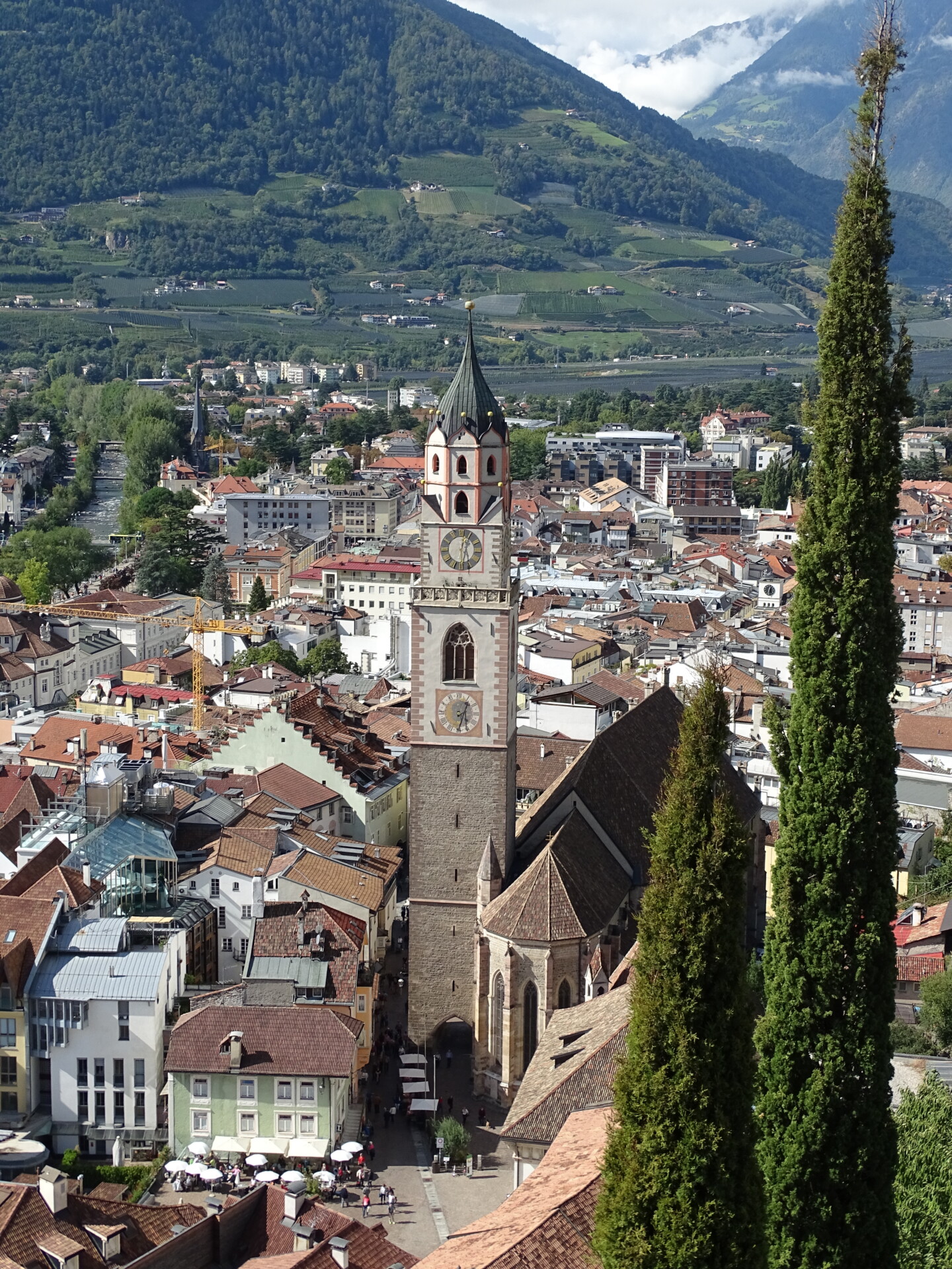 Heute fuhren wir mit dem Auto nach Meran um ein bisschen zu Shoppen. Da wir schon mehrmals in Meran waren beschlossen wir mit dem Sessellift ins Dorf Tirol zu fahren. Oben angekommen spazierten wir Richtung Tappeinerweg wieder runter Richtung Meran. Zurück in Meran stiegen wir wieder ins Auto und fuhren an den Gärten von Schloss Trauttmansdorff vorbei. Ich habe immer gedacht das ist was für ältere Leute, dem ist aber nicht so.